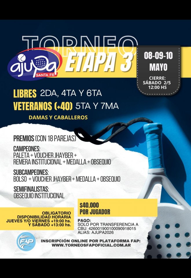 »» Evento: AJUPA SANTA FE »» Localidad: Santa Fe »» Fechas: 07/05/2026 al 10/05/2026